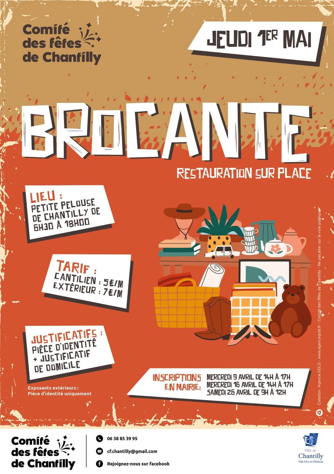 Le Comité des Fêtes de Chantilly vous donne rendez-vous le jeudi 1er mai 2025 pour la traditionnelle brocante de printemps, en plein cœur de notre ville.