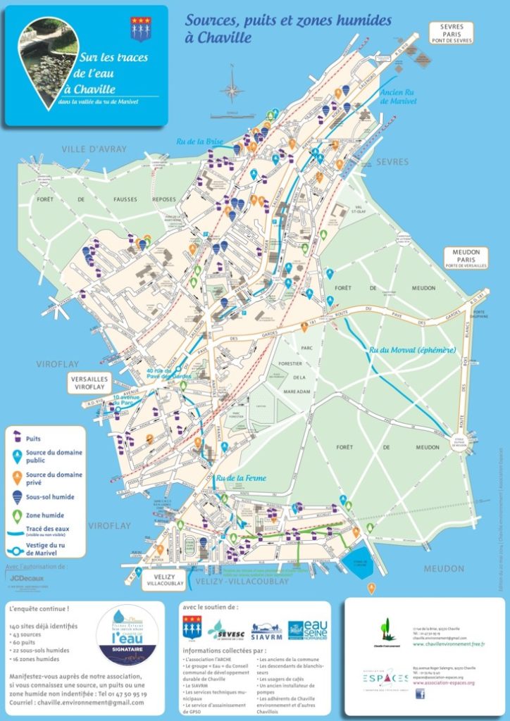 Si vous connaissez une source, un puit ou une zone humide non identifiée, n’hésitez pas à vous manifester auprès de l’association Chaville Environnement. Téléphone :01 47 50 95 19, ou Courriel : chaville.environnement@gmail.com. |