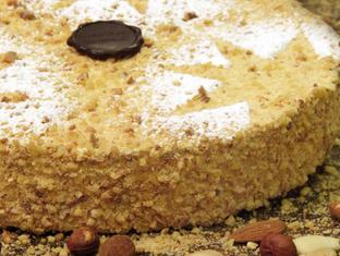 Inventé en 1946, ce gâteau est bien ancré dans la culture gastronomique locale. Sa recette, inchangée depuis ses origines, met en œuvre une pâte de macaron recouverte d’une crème légère au praliné, le tout saupoudré d’amandes et de noisettes torréfiées.